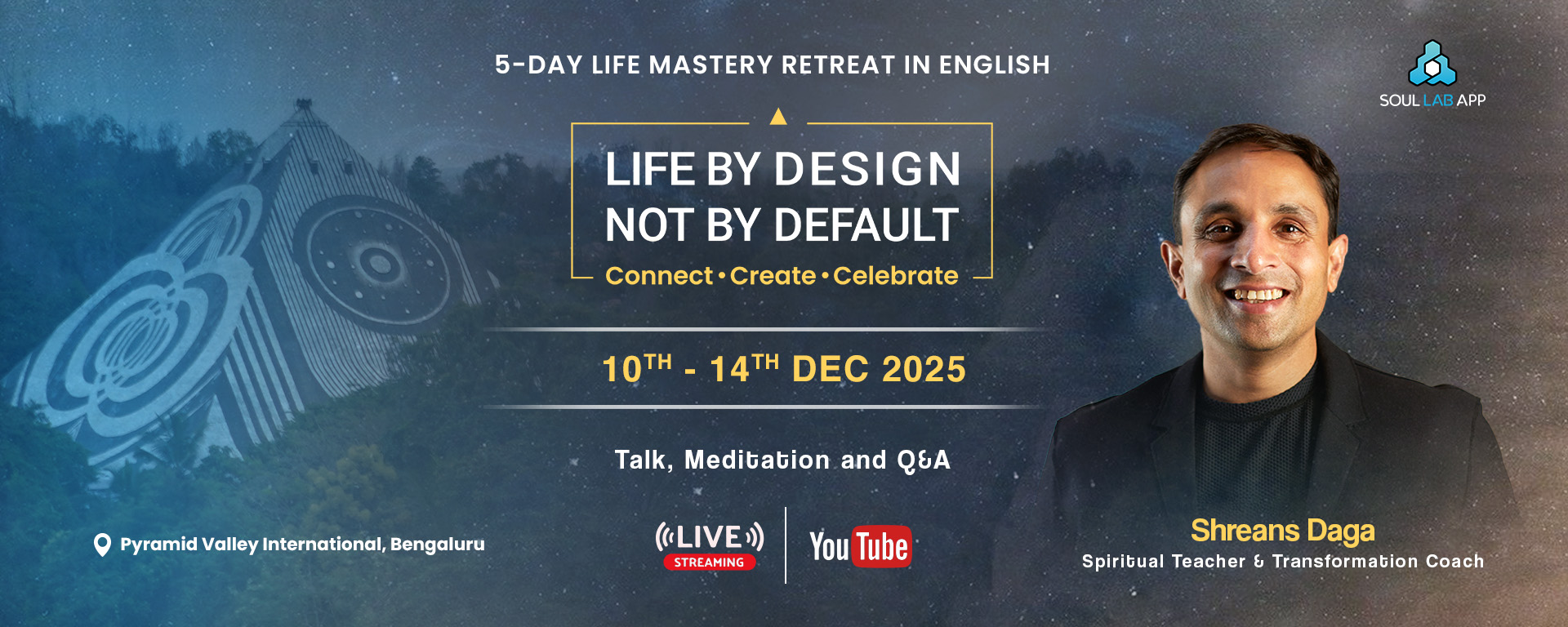 We at the foundation want to help as many people as possible who are seeking transformations. The event itself is free to attend. However, there are charges for your stay and food at the valley. The package prices cover the cost of accommodation and meals.